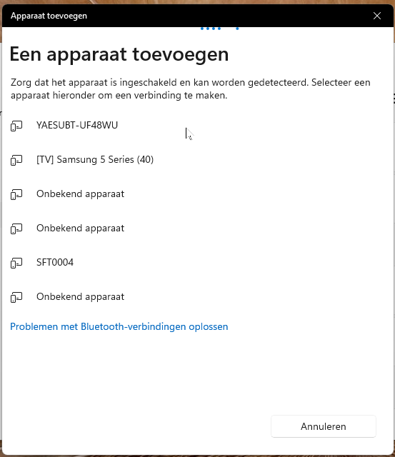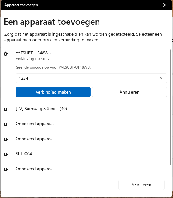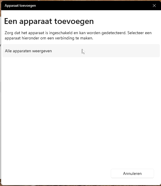 Zie je jouw YAESUBT-apparaat niet direct? Klik dan op “Alle apparaten weergeven” om de lijst te vernieuwen.