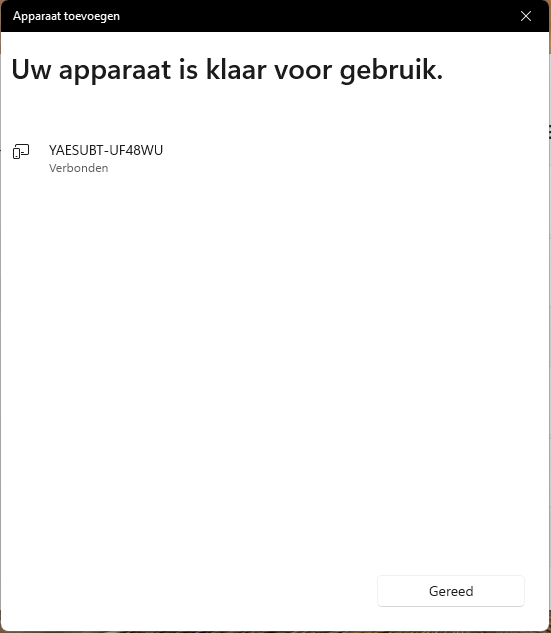 Windows bevestigt nu dat je YAESUBT-apparaat succesvol gekoppeld is.