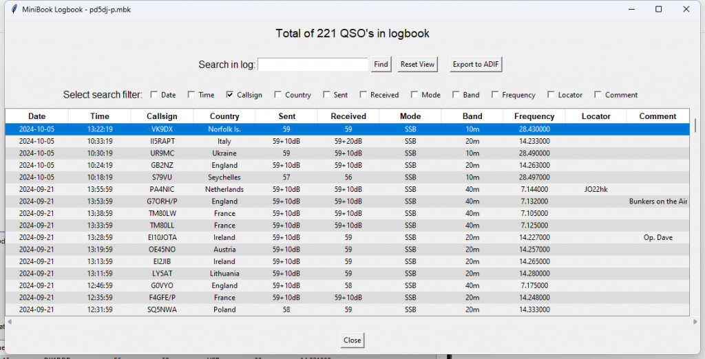 With MiniBook, logging a QSO is as simple as it gets, while still capturing all the critical information needed for accurate and complete records. The program includes a powerful ADIF export feature, allowing users to share and archive their logs in the widely recognized format.