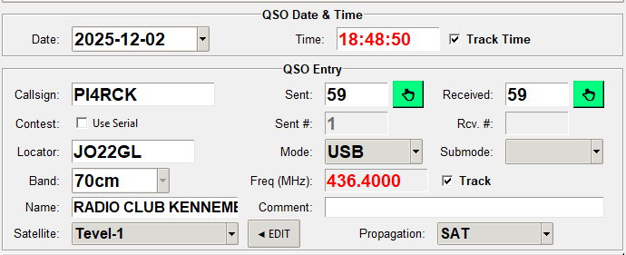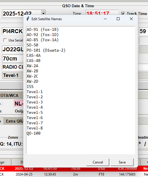 | Satellite | The satellite name. Used for satellite QSOs; usually left blank for HF. |